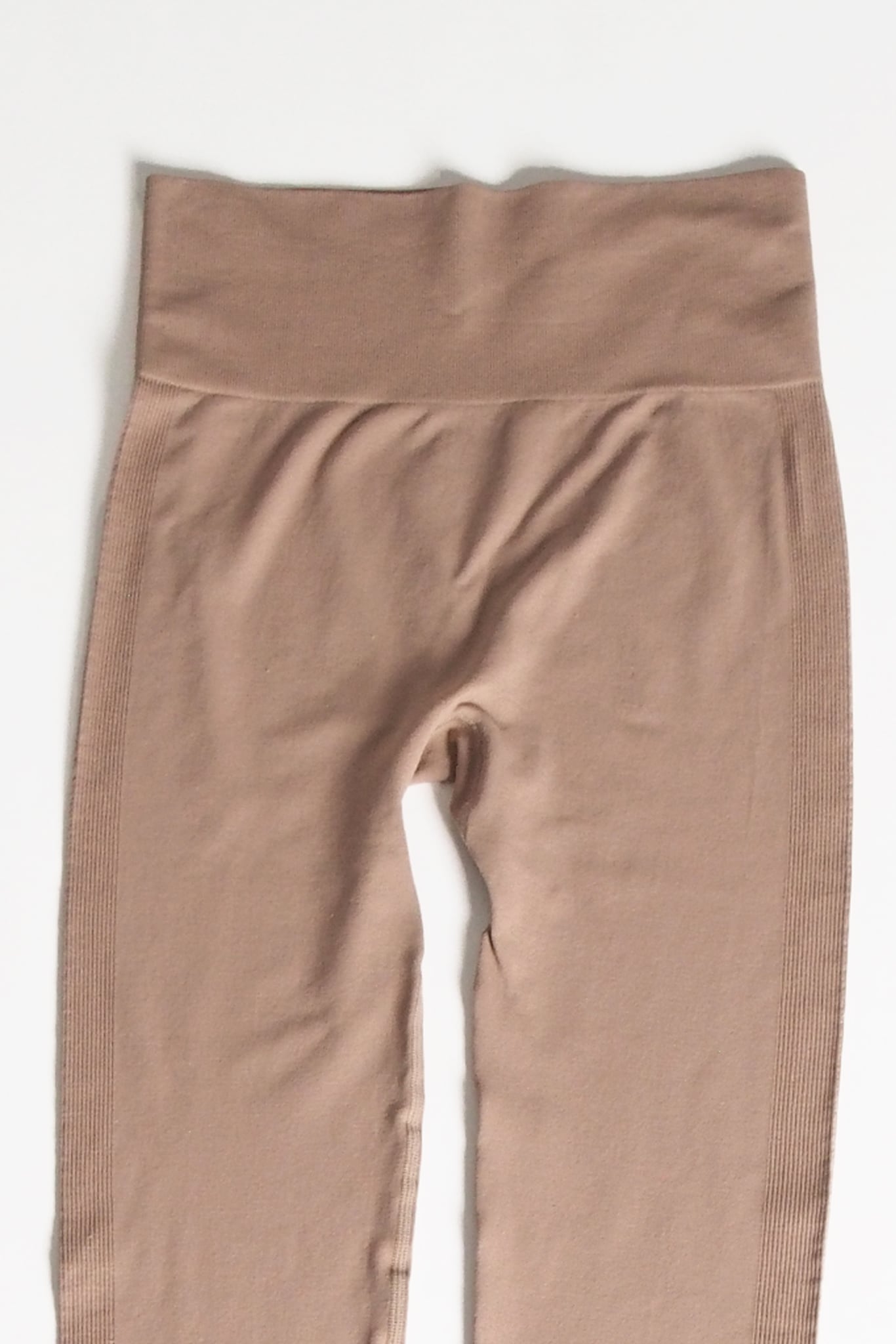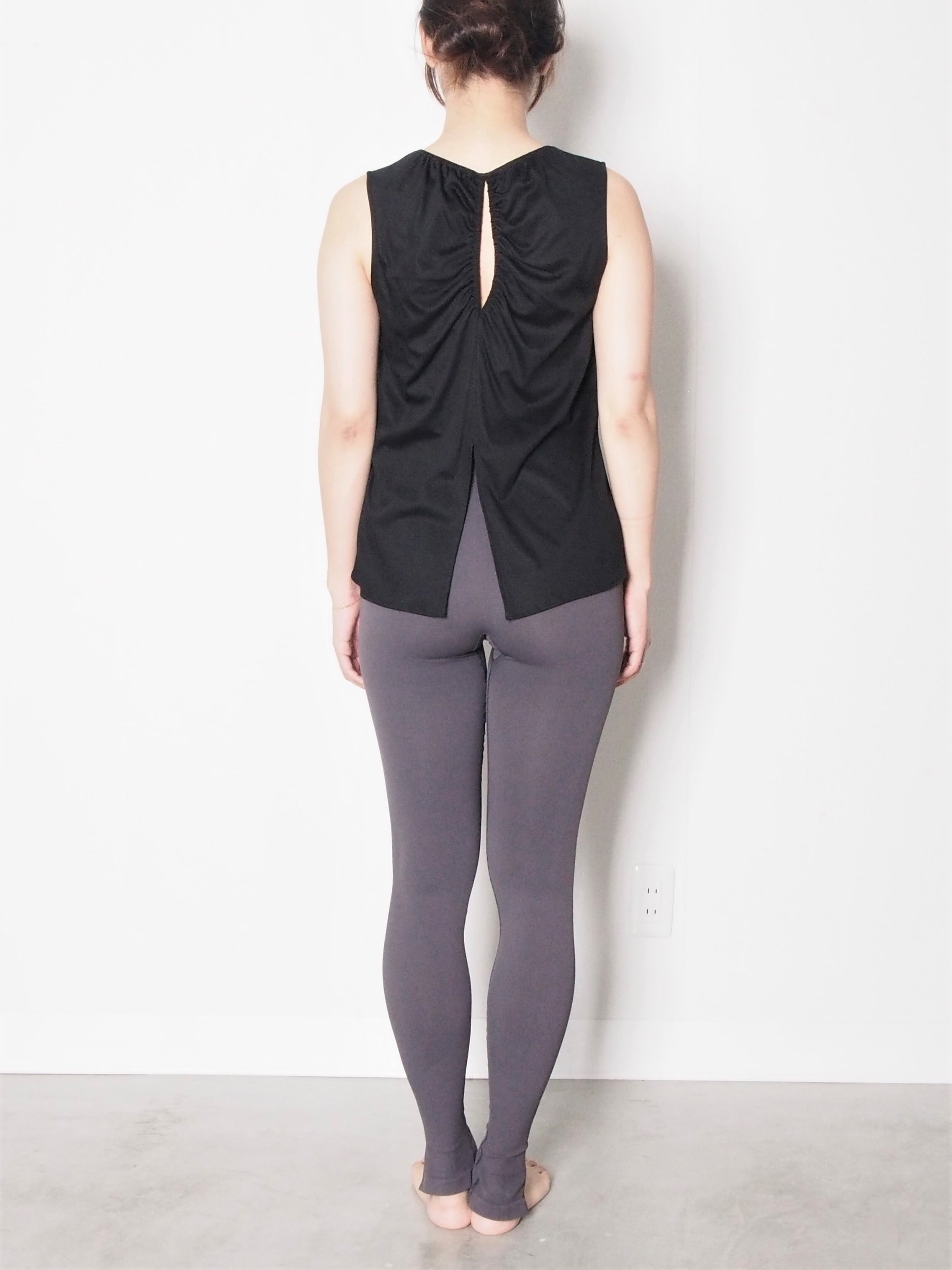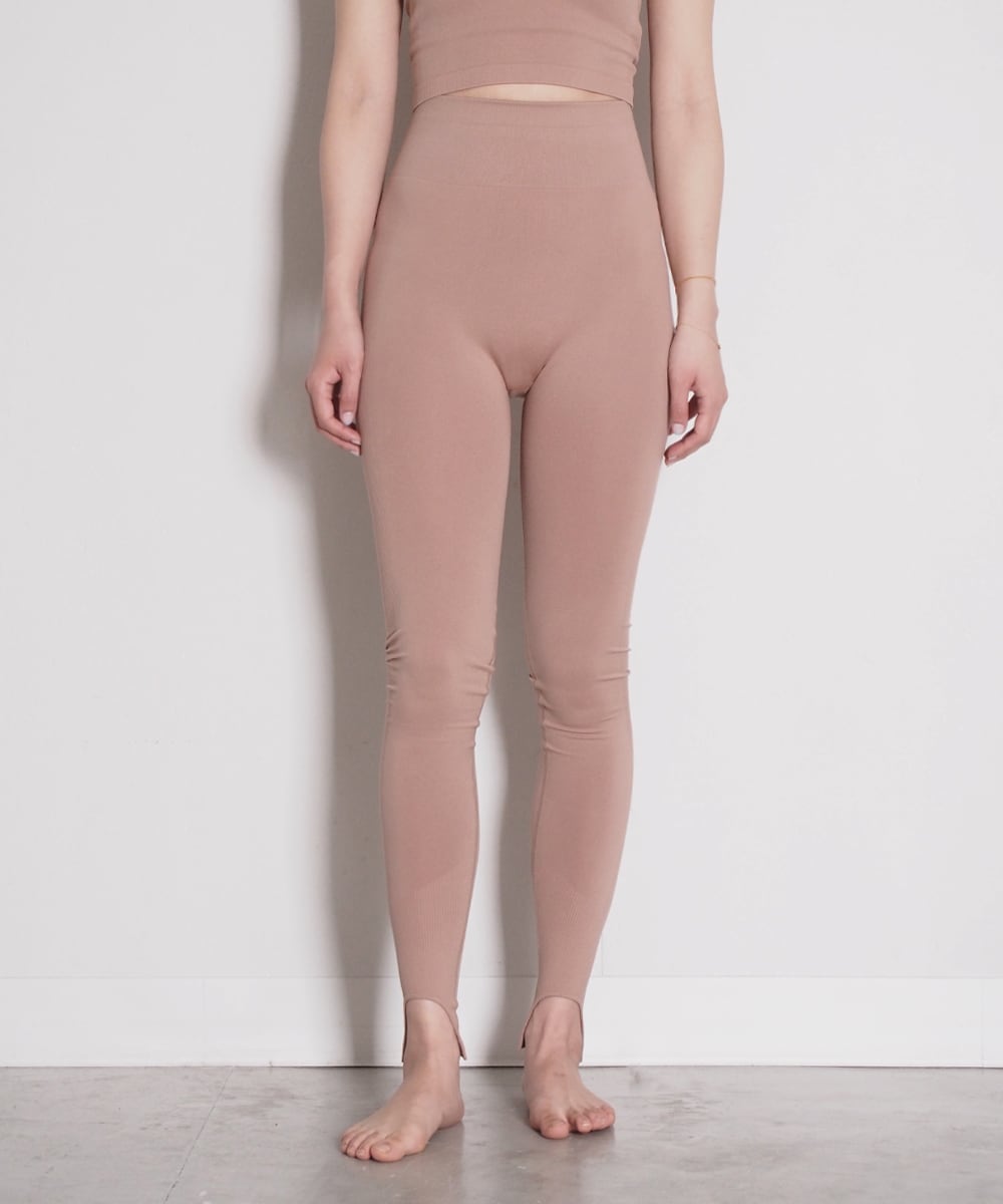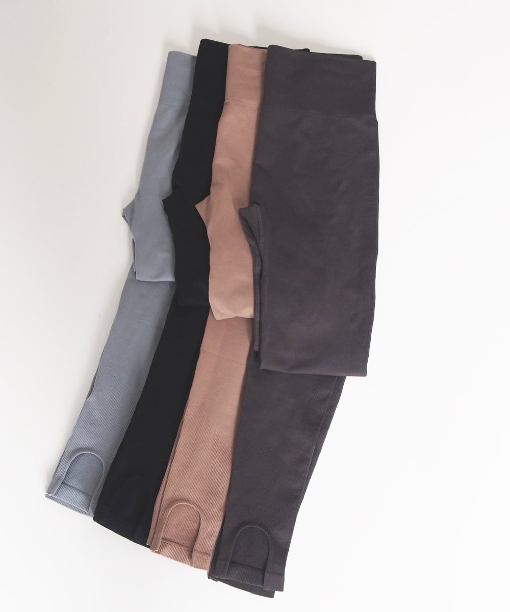 機能糸で編み立て、アーチ型のヘムラインが特徴的なファッショナブルなレギンスです。ウエスト位置は少しハイライズに。脇から足首にかけて網地を変えリブにしているのでしっかりホールドしてくれます。レギンスコーディネートにアクセントになります。